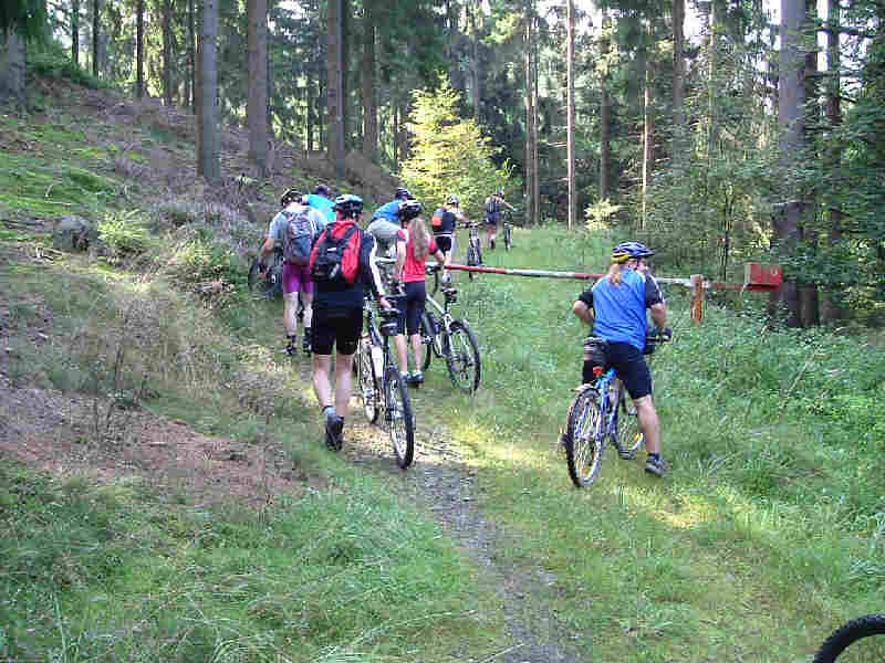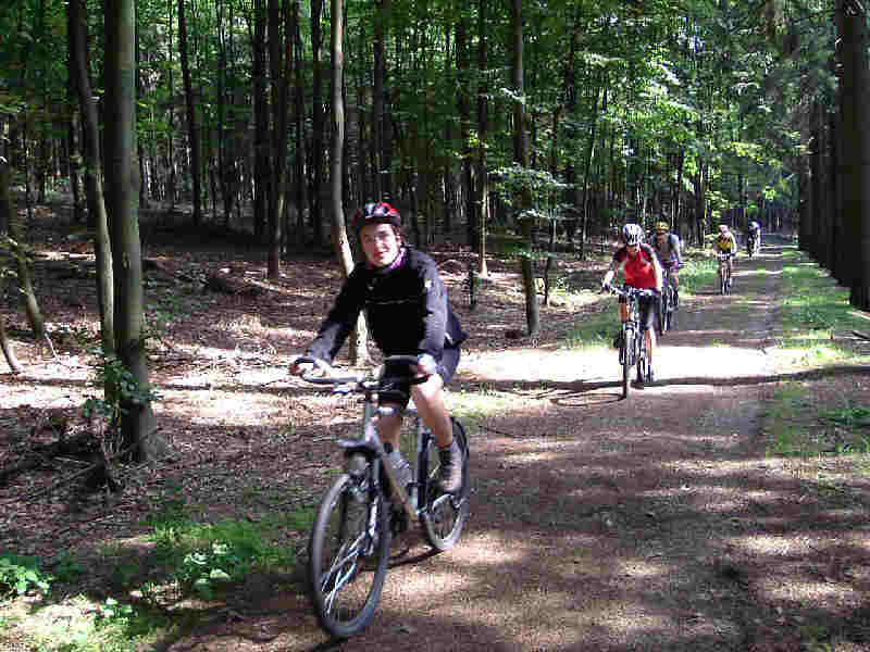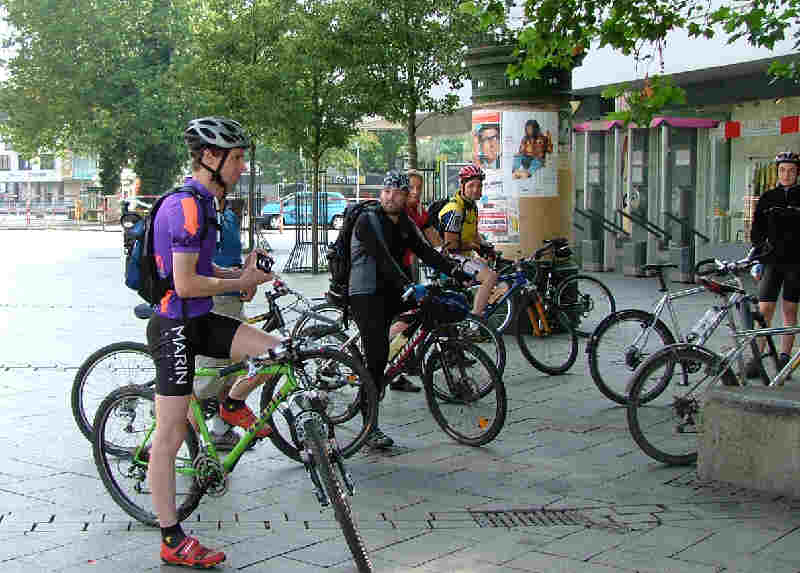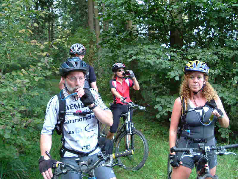 14.9.2004, 10.00h am Scheinerplatz in Siegen. Neben dem City-Lauf startete noch eine zweite Veranstaltung, die es zu erwähnen gilt. Die MTB-Tour rund um Siegen Teil 2. Etwa 35 km und 1000 Höhenmeter sollten uns auch in diesem Jahr wieder bevorstehen, da wir uns aufmachten unsere hügelige Heimatstadt auf der Südseite zu umfahren. |
