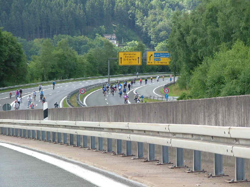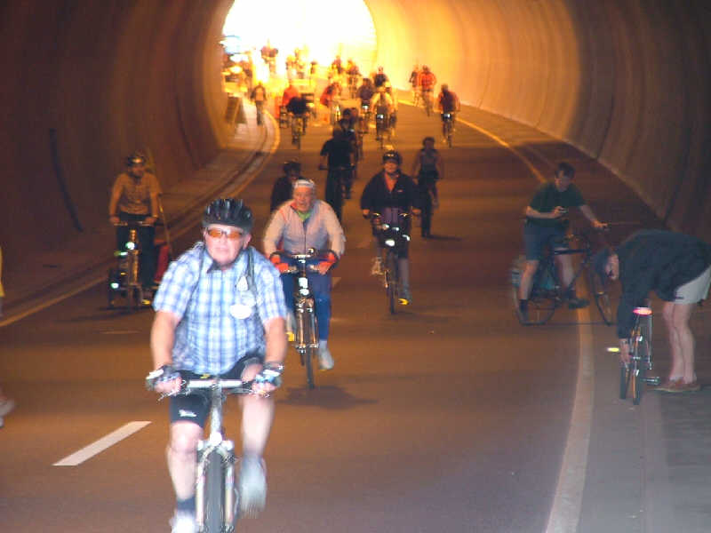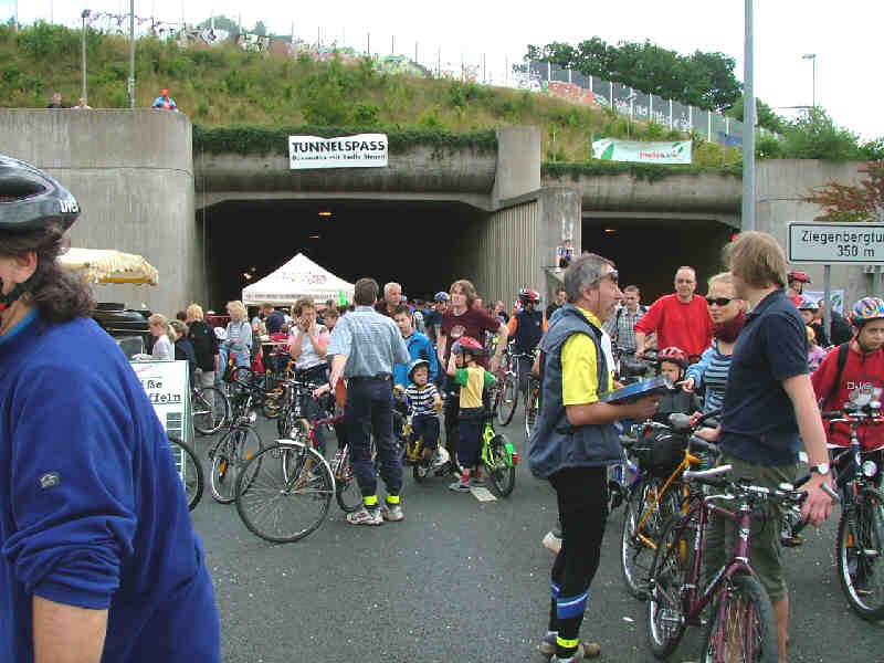 Der Ziegenbergtunnel wird gut frequentiert. Noch kommt man gut durch, aber das soll sich im Laufe des Tages noch ändern. Es sollten noch viel mehr Teilnehmer werden. |