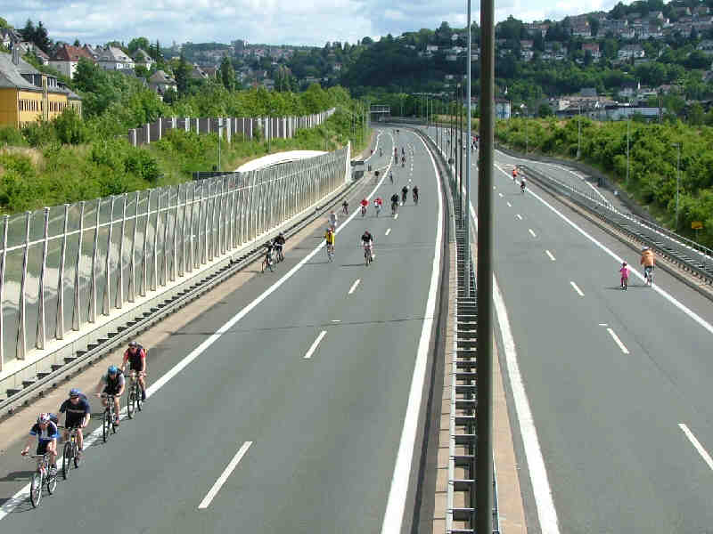 Nach und Nach erobern die Radfahrer die Hüttentalstraße. Ich finde das ist ein viel schönerer Anblick als sonst mit den ganzen Autos da drauf. |