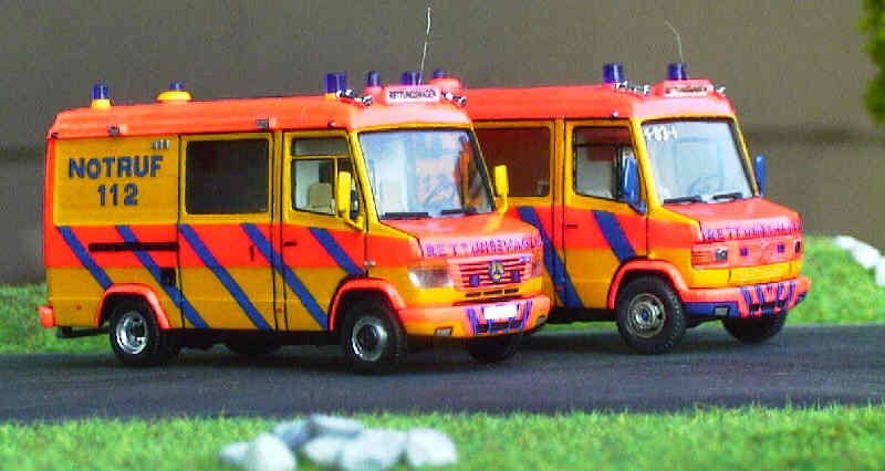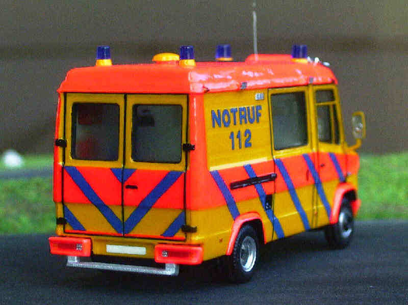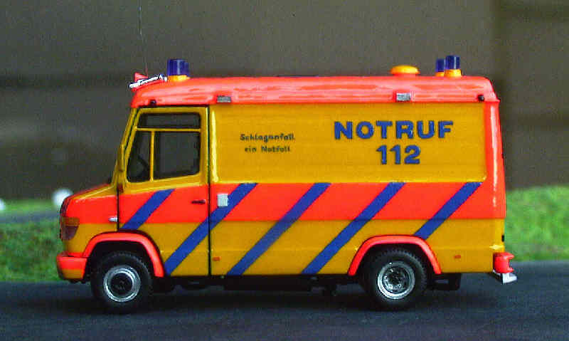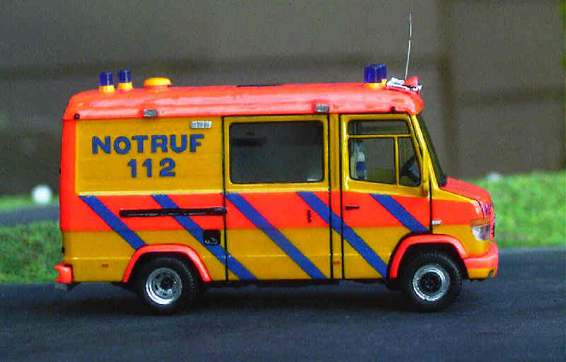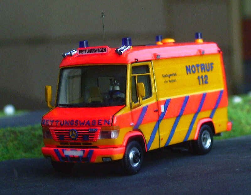 Ich habe es endlich geschafft. Einer meiner neuen RTW ist fertig. Kurzbeschreibung: Mercedes Vario 615 D von herpa, viel Farbe von Revell und eine neue Inneneinrichtung im Patientenraum (zur Umbaubeschreibung gibt es weiter unten einen Link). |