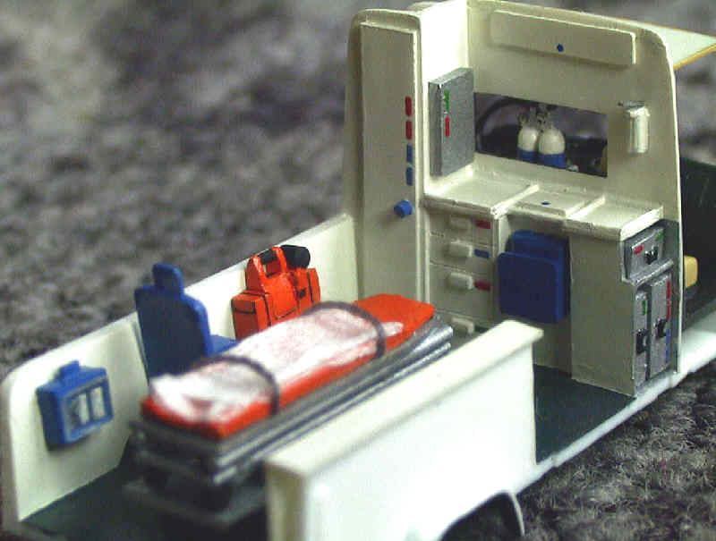 Der neue Ausbau des Patientenraums. Der von herpa gefiel mir nämlich nicht so richtig gut. Der jetzige Ausbau ist an den der Firma Strobel angelehnt, und aus ein wenig Polystyrol entstanden. |