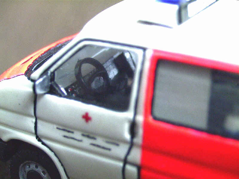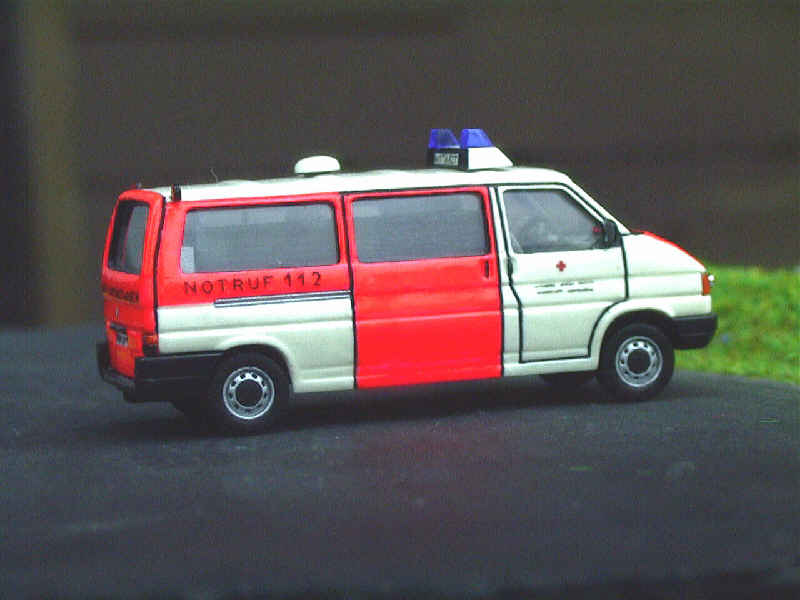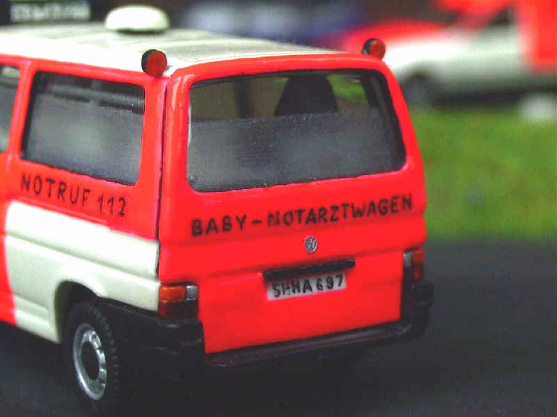 Hier einige Ansichten von außen, bis auf die Farbe hat sich wenig getan: einen Blaulichtbalken und einige Zurüstteile hat das Modell bekommen. Die Felgen stammen von herpa. |