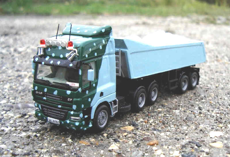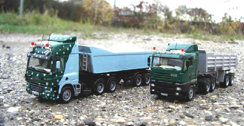 Im zweiten Teil gibt es noch zwei Kippsattelzüge in beinahe einheitlichem Design zu sehen. |