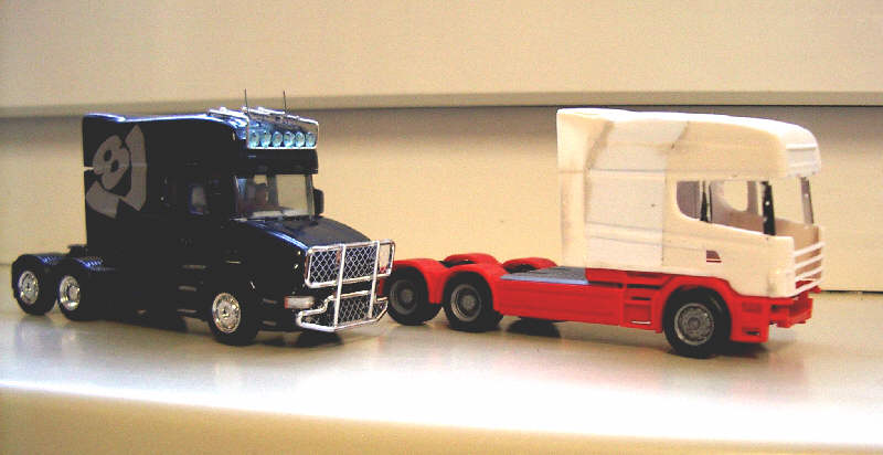 Alexander hat sich vor einiger Zeit zwei Scania Longline gebaut. Nachdem er mir Bilder davon gemailt hat, will ich Euch die nicht vorenthalten. Als erstes gibt es die Umbaufotos zu sehen. Die Bilder der fertigen Autos gibt es im zweiten Teil. |