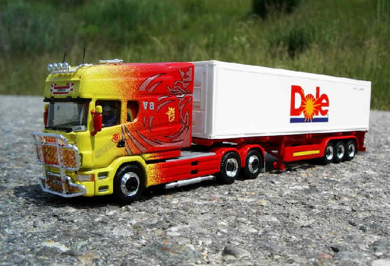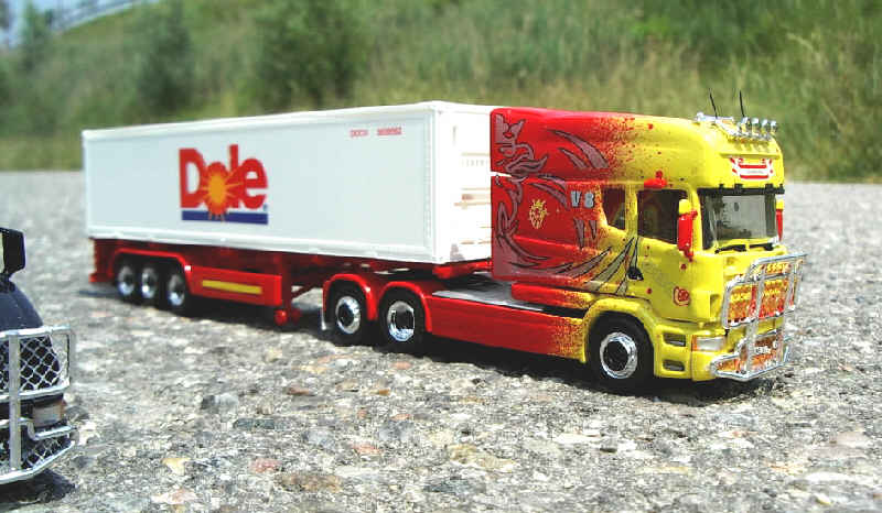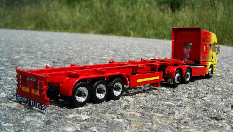 Hier mal noch von der Rückseite. Auch ohne den Container gibt der Scania ein schönes Bild ab. |
