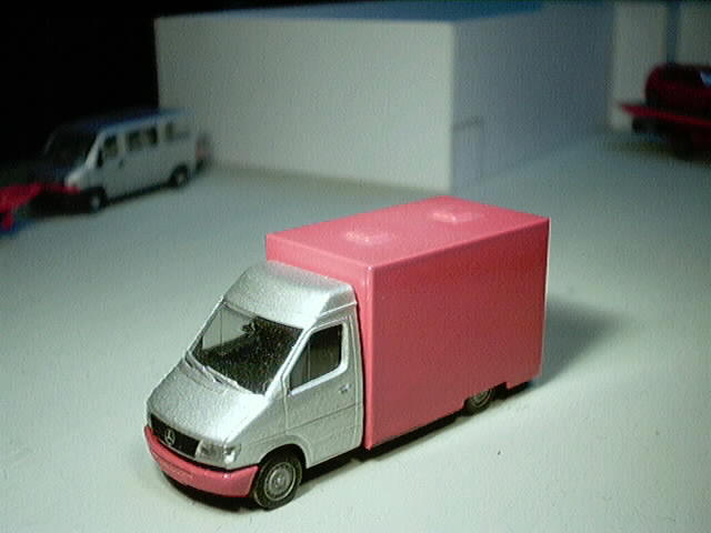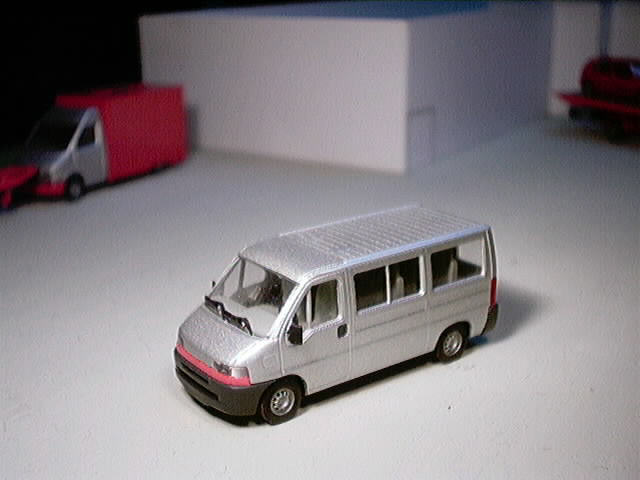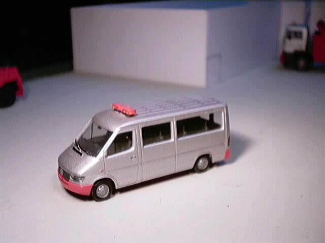 Fiat Ducato und MB Sprinter, die die fleißigen Preiserlein transportieren, um Ampeln, Schilder und sonstige Hindernisse bei Schwertransporten ab- und wieder aufzubauen |