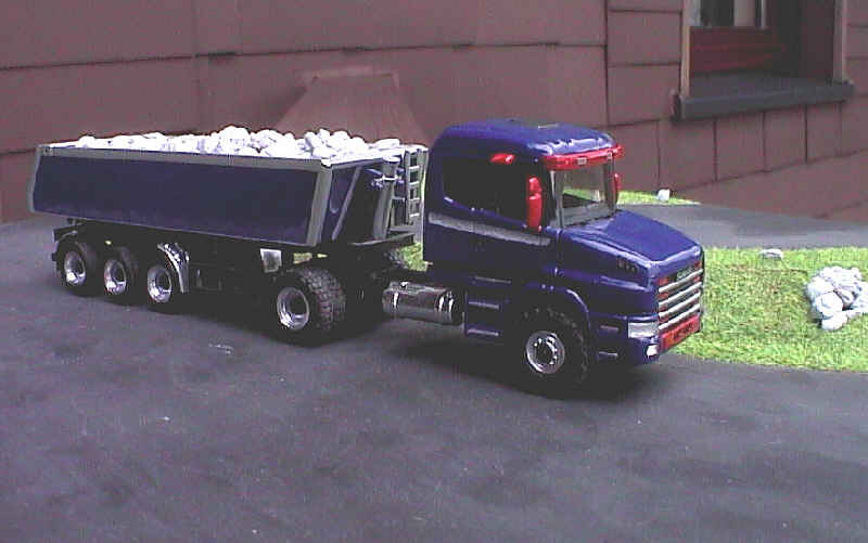 Tanks und Spritzschutzlappen für die Hinterachse wurden einem Kenworth T 600 A von herpa entnommen. Die Bauarbeiter wird der Anblick sicherlich erfreuen. |