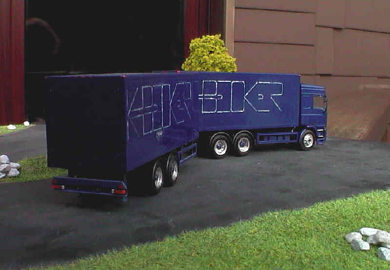 Die Zugmaschine. Wie fast alle Autos der Spedition in zurückhaltendem Nachtblau gehalten. |