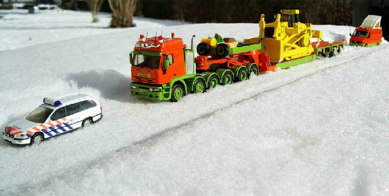 ...als sich der Fahrer dieses Iveco auf den Weg macht, um die CAT-Raupe an einen Kunden auszuliefern. Bisher verlief der Transport trotz der schwierigen Straßenverhältnisse recht gut. |