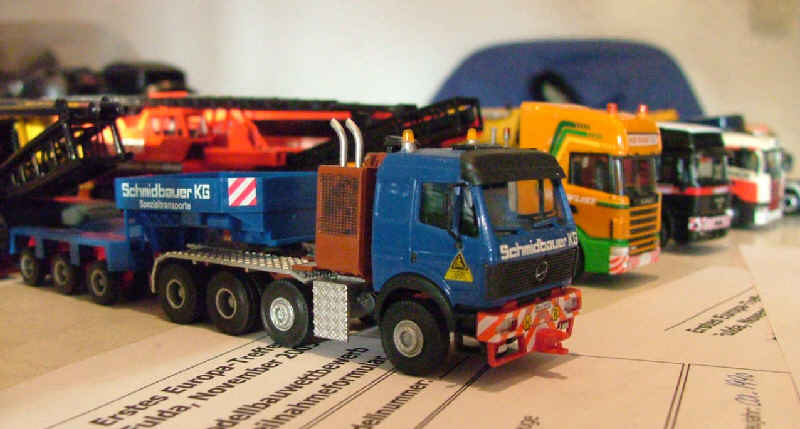 Transportiert wird das Ganze mit dieser MB 3548 Zugmaschine von Schmidbauer, die auch einige Verfeinerungen erhalten hat. |