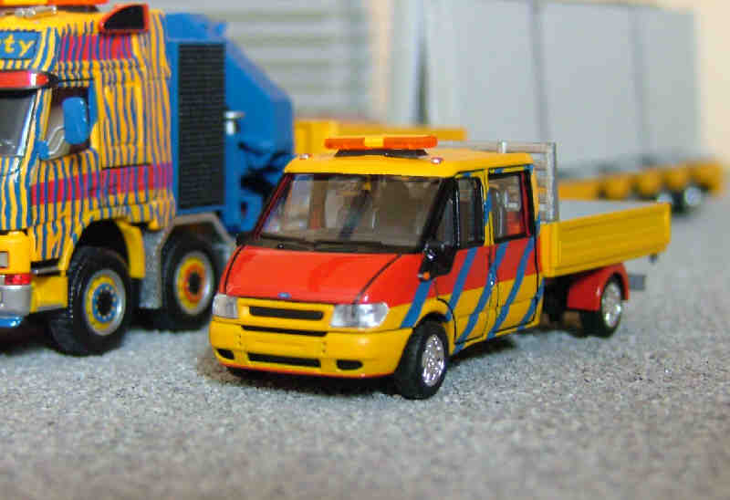 Auch die kleinen Autos sollen ja auffallen. Daher hat der Transit ebenfalls den gewohnten Firmenlook bekommen. Hoffentlich fährt da keiner einen Kratzer rein;-) |
