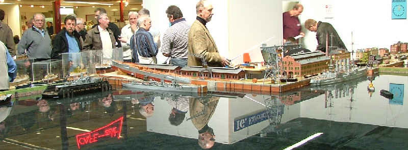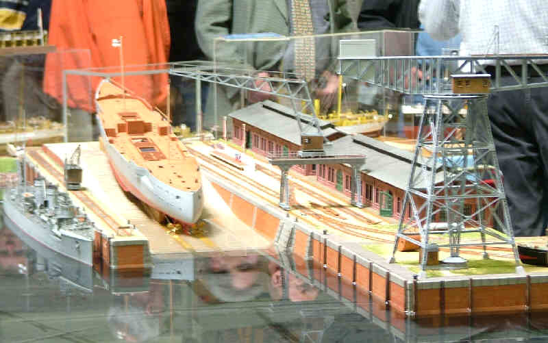 Die IG Kaiserliche Marine war mit einem beachtlichen Diorama inklusive zugehörigem Wasserbecken angerückt, in welchem die Schiffe ihre Runden drehen durften. |