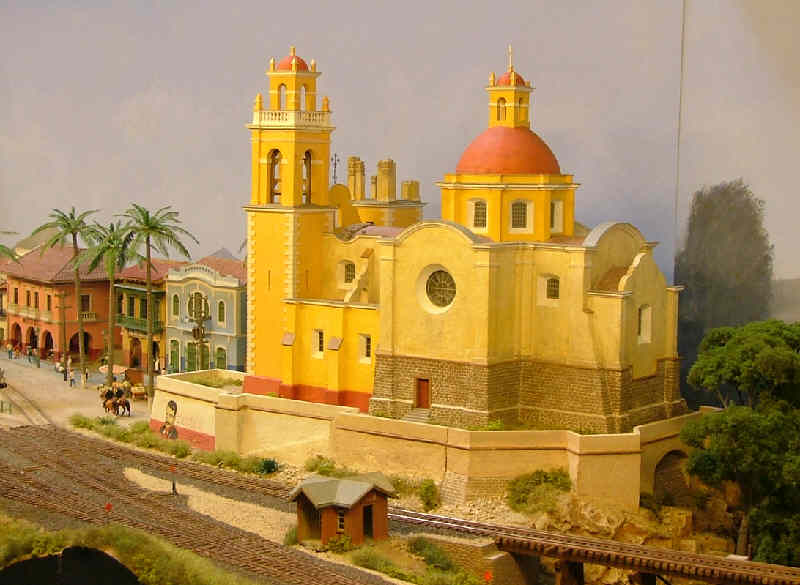 Im Mittelpunkt steht die große Kirche, die nicht nur durch die gelbe Farbe hervorsticht. |