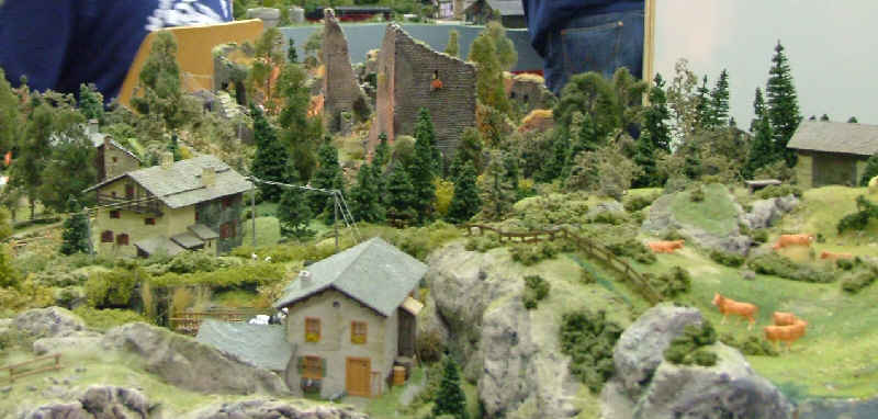 Die Modellbaufreunde Leutkirch waren mit einer schönen Schauanlage angereist. Stellvertretend für all die vielen zeige ich hier mal einige Höfe mit Ruine im Hintergrund... |