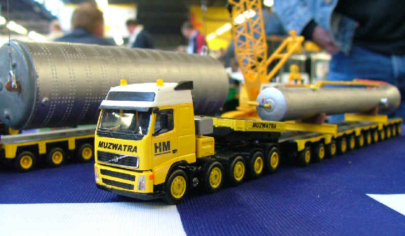 Am 23.4.2005 hieß es wieder "auf zur Modelshow Europe". Der Veranstaltungsort hatte von Geldermalsen nach Eelde gewechselt. Dabei sollte sich zeigen, daß der Umzug in den Flowerdome in Eelde eine gute Wahl war, da es hier wärmer und vor allem heller war, man also viel besser Fotos machen konnte. Der Verein für Kran- und Schwerlastmodelle im Maßstab 1:87 hat es sich auch in diesem Jahr nicht nehmen lassen hinzufahren und seinen Teil zur Ausstellung beizutragen. |