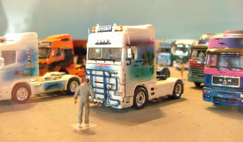 Einige Modelle von Holm Kämpfer. Neben sehr schönen Airbrush-LKW hatte er auch die größten der Großen mitgebracht. Mehr dazu weiter unten. Weiterhin gibt es noch einige Bilder von Modellen nach Vorbildern der Spedition Peters, die Ralf Schneider gebaut hat. |