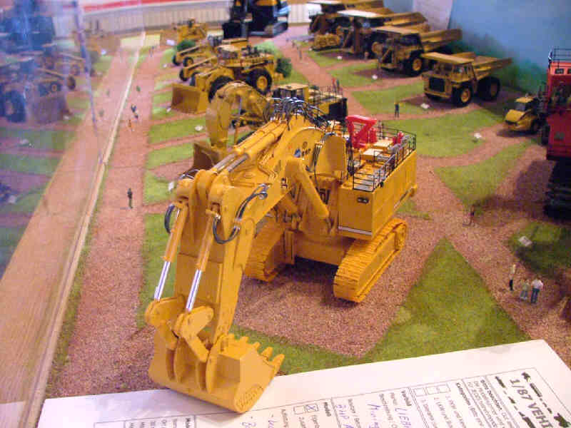 Nun zu den großen. Um ganz ehrlich zu sein, beim ersten vorbeigehen habe ich die Modelle für verirrte 1:50er gehalten (und ich war nicht der einzige). Bei genauerem Hinschauen findet man aber doch Details, die an 1:87 erinnern. Neben den Preiserlein in vertrauter Größe fallen auch die Verhältnismäßig kleinen Führerhäuser an den Maschinen auf. |