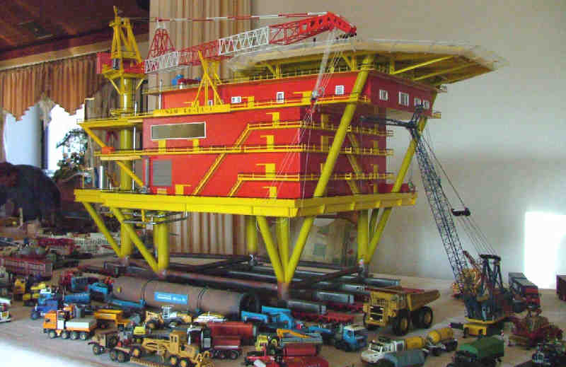 Die Ölbohrplattform (laut Leopold nur ein Modul einer Plattform). Dazu muß man wohl kaum noch etwas sagen ;-) Desweiteren kann man noch einen Teil des mitgebrachten Fuhrparks erkennen. |