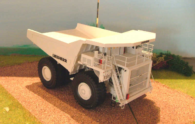 Kommen wir nun zu den etwas größeren Geräten. Hier z.B. einem Liebherr T 282. Seines Zeichens einer der größten Muldenkipper der Welt. So hatte auch das Modell eine beachtliche Größe. Dennoch wurden auch hier die zahlreichen Details nicht vernachlässigt. |