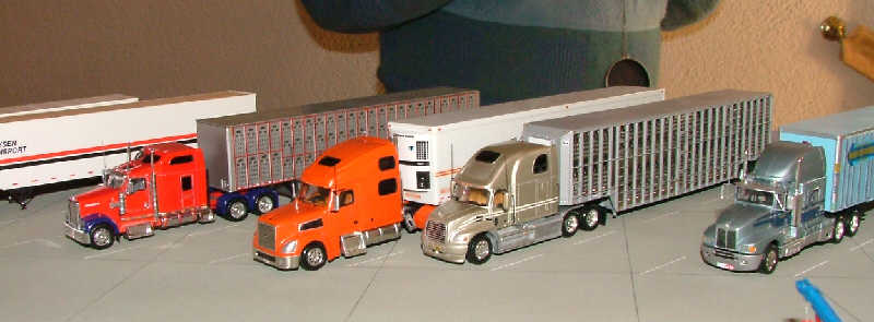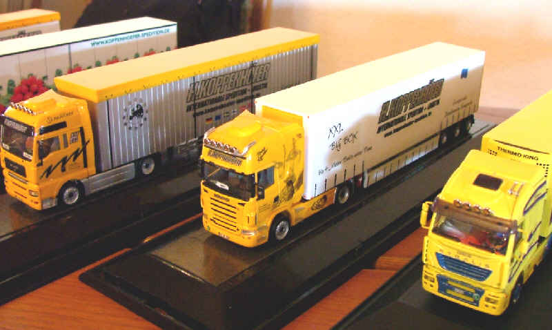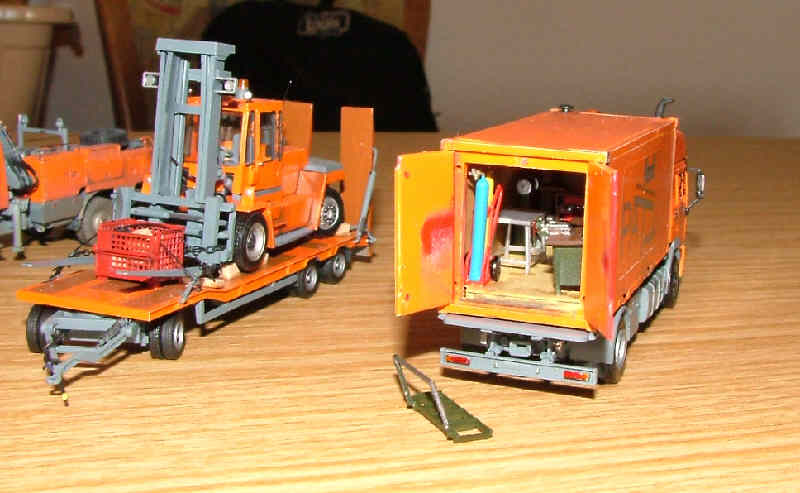 Einige orange-graue LKW mit vielen schönen Details hatte Peter Aschauer mitgebracht. |