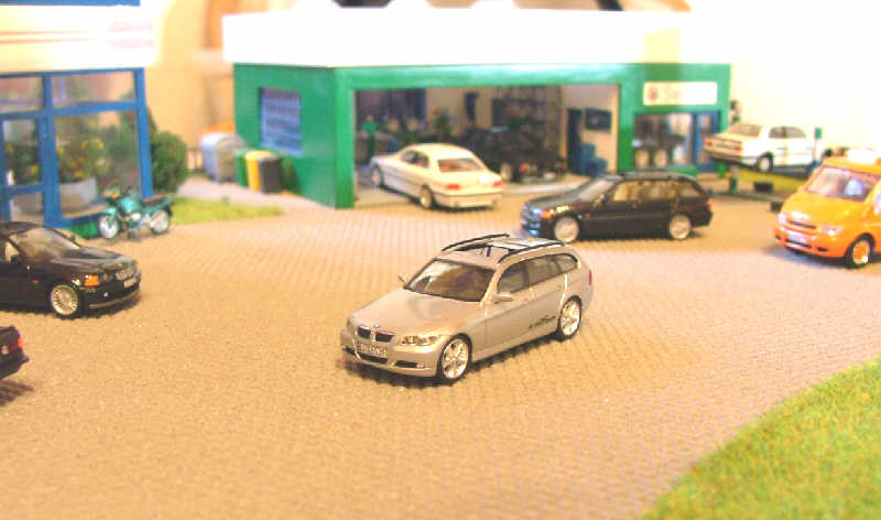 Zurück auf den europäischen Kontinent kommen wir mit diesem BMW-Autohaus von Paul Arens. Der BMW in der Bildmitte erhielt ein Glasschiebedach. |
