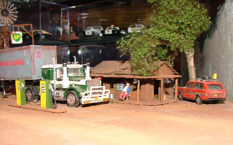Einmal um die Erde entführte uns Uli Slovig mit seinem Diorama über das Leben im Outback. Original mit eingestaubtem Roadtrain und Windrad im Hintergrund. |