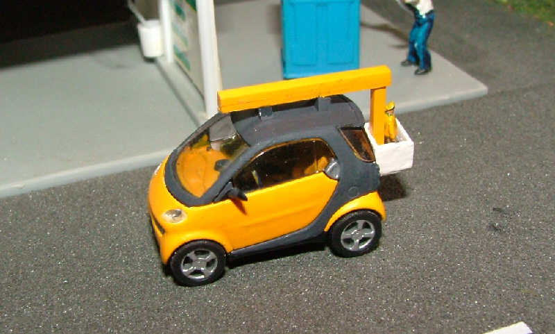 Michael Scheel hatte einen kleinen Hubsteiger mitgebracht. Auch wenn der Smart nur zu Werbezwecken fährt, so ist es doch eine interessante Variante. |