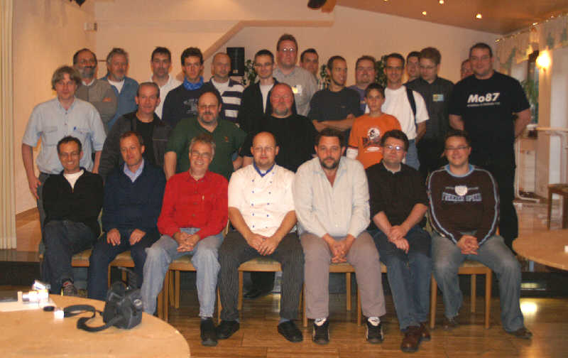 Zum Abschluß noch das obligatorische Gruppenfoto mit einem Großteil der Aussteller, Händler... Leider fehlt Kurt Hofmeyer auf dem Foto, da er hinter der Kamera stand. |