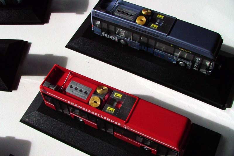 Die meisten der ausgestellten Exemplare waren auf Antrieb durch Brennstoffzellentechnik umgebaut. |