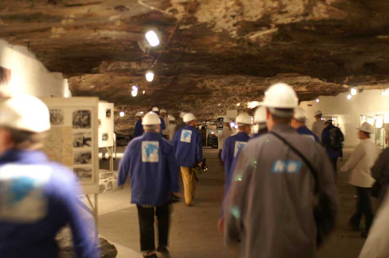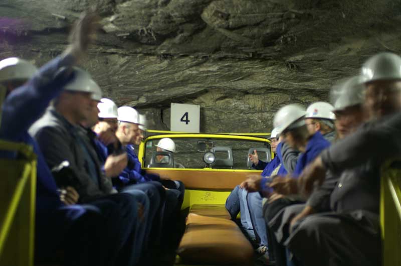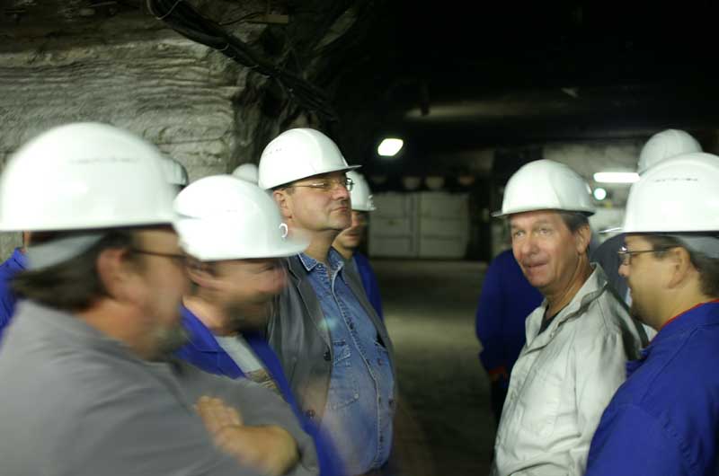 Zunächst folgten aber mal die zünftige Einkleidung der Bergleute und die Fahrt in viele Meter Tiefe. |
