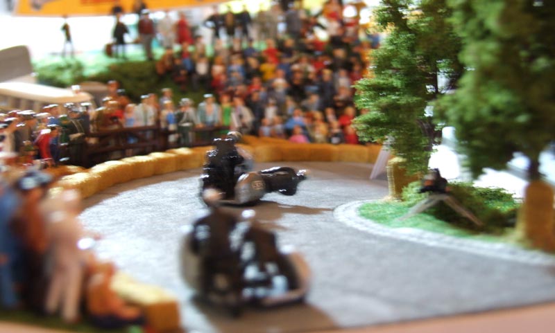 Genauso ein rasantes Diorama nach einem Motorradrennen vom Schottenring 1955. |