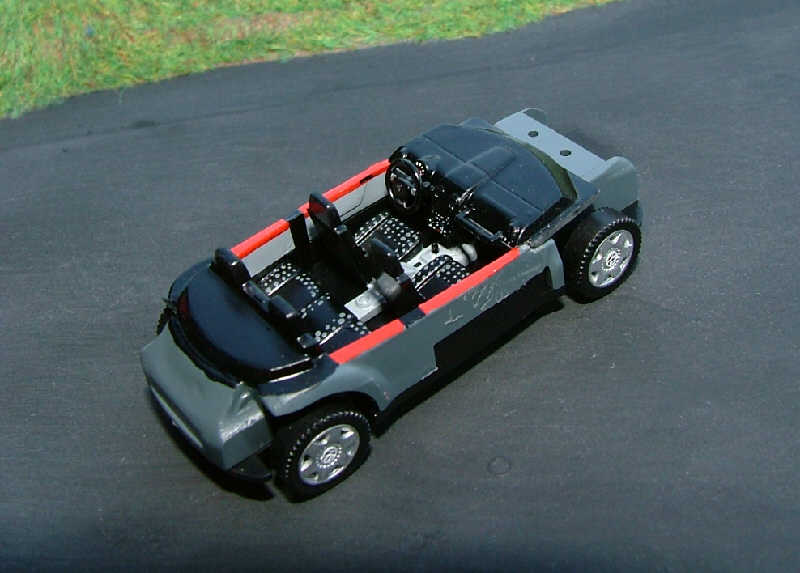 ...und so von innen. Ich hätte nicht gedacht, daß es mal so kompliziert sein könnte ein Serien-Auto von innen zu lackieren. Armaturenbrett, gepunktete Sitze, mehrfarbige Innenverkleidung... Zwischenzeitlich habe ich schon mal überlegt, ob das wirklich alles so sein muß;-) |