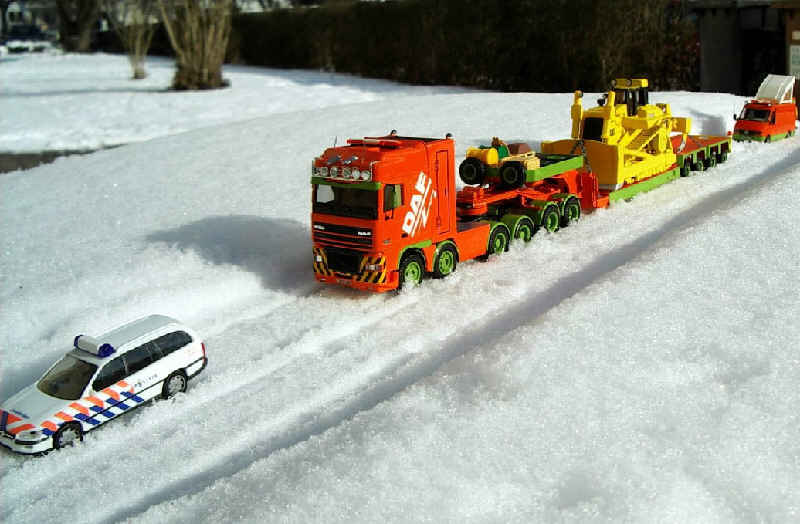 ...als sich der Fahrer dieses Iveco auf den Weg macht, um die CAT-Raupe an einen Kunden auszuliefern. Bisher verlief der Transport trotz der schwierigen Straßenverhältnisse recht gut. |